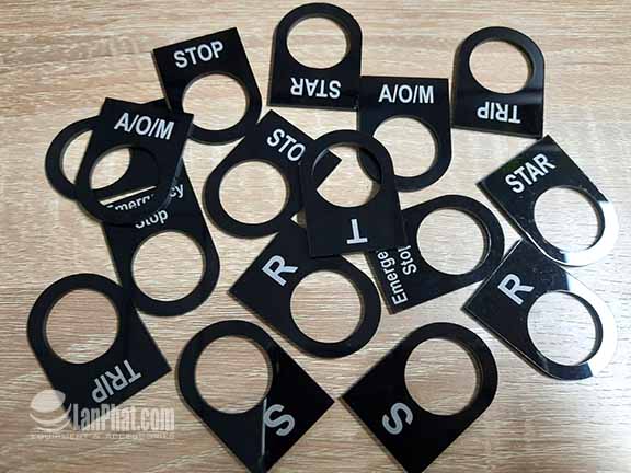 thẻ có kích thước lỗ phù hợp với kích thước nút nhấn tiêu chuẩn của tủ, bảng điện (Lân Phát có thể sản xuất số lượng lớn cho mọi kích thước, màu sắc theo yêu cầu). Phần lỗ để gắn nút nhấn được mài nhãn, khít và giữ chặt nút nhấn tuy nhiên không ảnh hưởng tới thao tác vận hành. ;